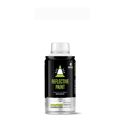 MTN PRO Reflektujuća boja je sprej zapremine 150ml koji sadrži boju formulisanu specijalnim smolama i pigmentima koji omogućavaju da se svetlo reflektuje nazad do izvora. Njegova reflektujuća moć ga čini idealnim za oznake na putu ili za bilo koju drugu situaciju u kojoj nedostatak svetlosti zahteva reflektujući objekat ili znak. Reflektujuća boja savršeno funkcioniše na većini površina (metal, plastika, staklo, drvo i kamen) i na bilo kojoj drugoj površini gde je potrebno trajno reflektujuće obeležavanje. Sivkasto providna boja.